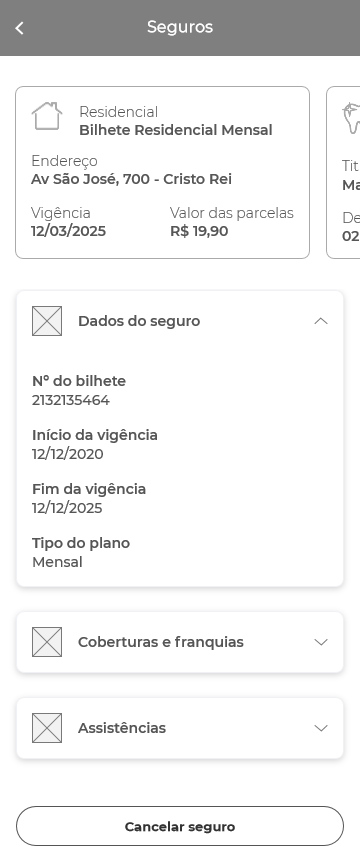 Melhoria: Os produtos que o usuário possui se tornaram cards clicáveis com acesso rápido às informações sobre o seguro.