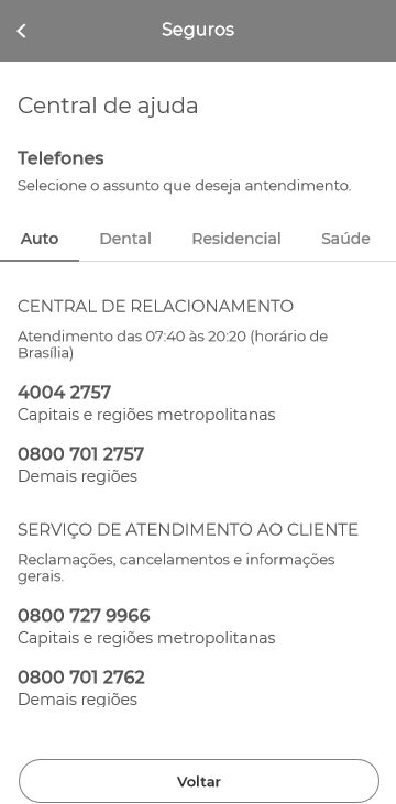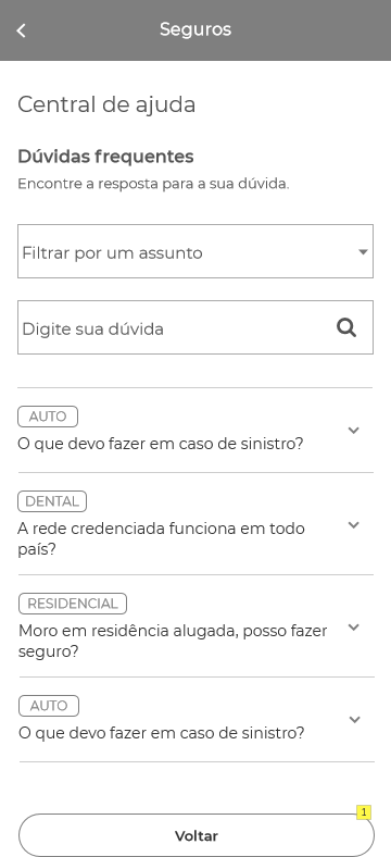 Com os feedbacks dos usuários, a equipe se reuniu e discutiu as propostas, chegamos então a primeira versão da tela inicial da área de seguros.