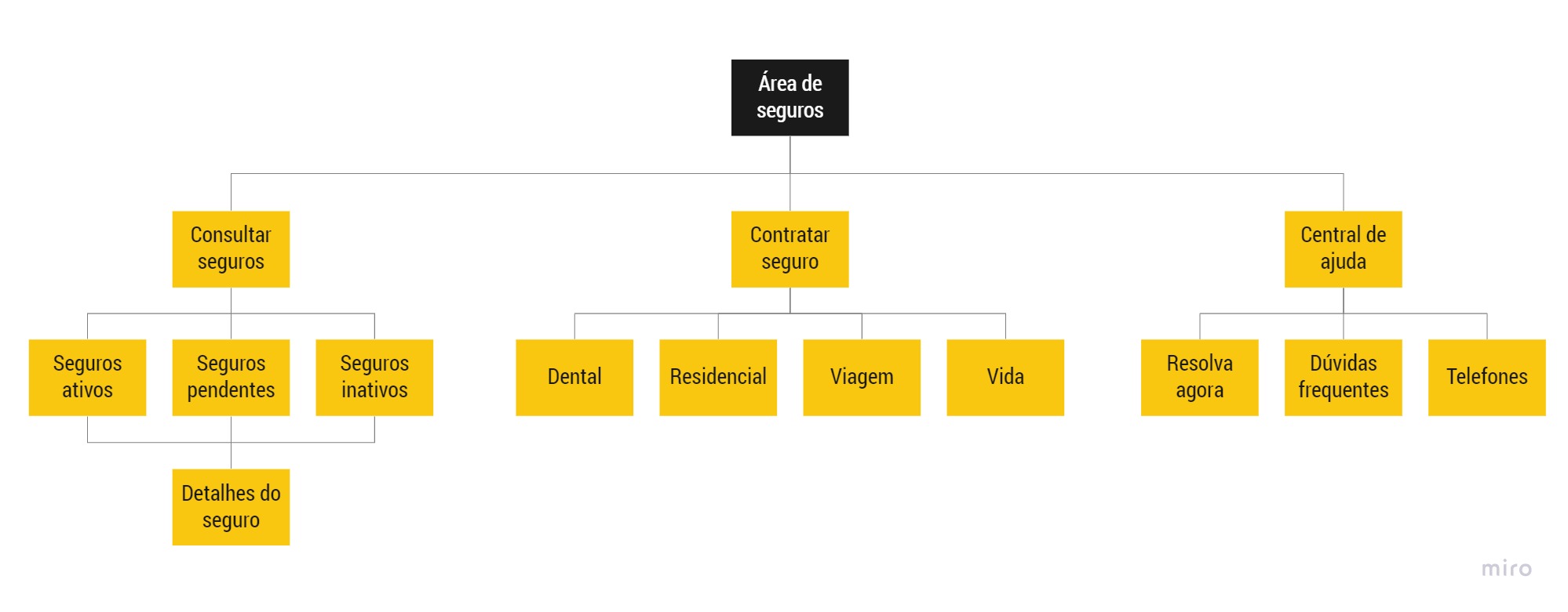 A equipe de UX Research do banco foi responsável por essa etapa. Eles realizaram uma entrevista em profundidade e mapearam as percepções dos usuários quando o assunto é seguros apresentando a versão anterior do projeto.