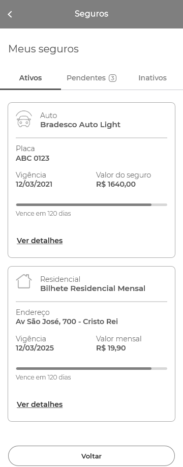 Melhoria: Os produtos que o usuário possui se tornaram cards clicáveis com acesso rápido às informações sobre o seguro.